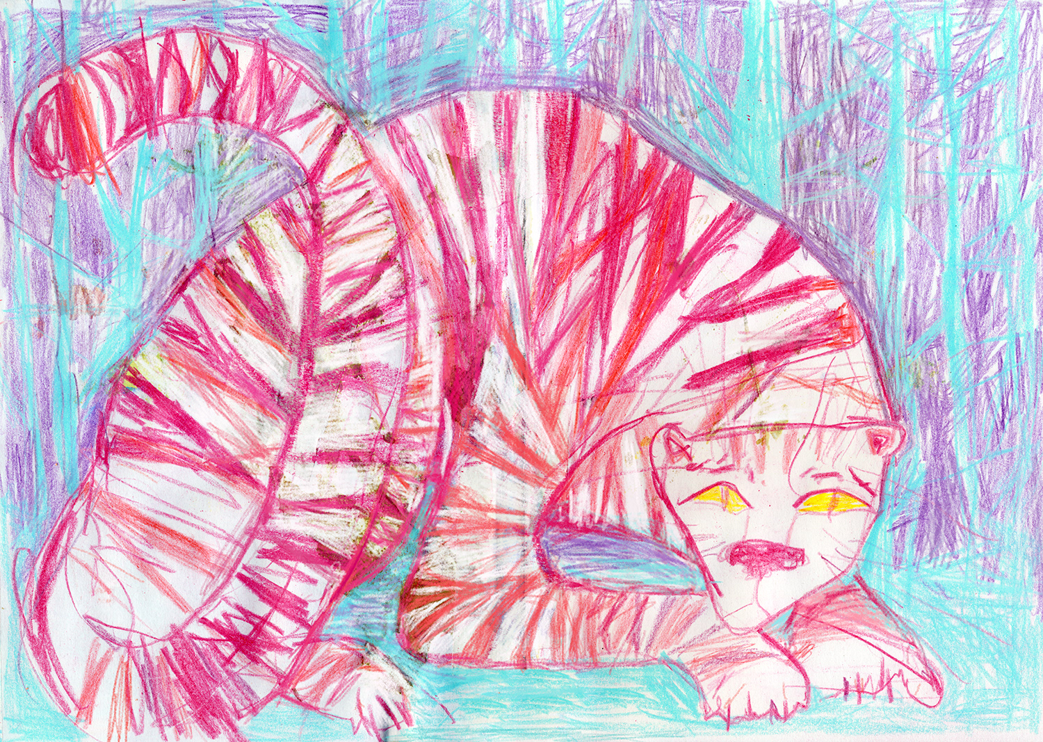 Бенгальский тигр Тимофей грустит, потому что встреченный днём в лесу дикобраз почему-то не захотел с ним играть и свернулся в шипастый клубок. Тимофей, не грусти. Дикобразы - не игрушка! :)